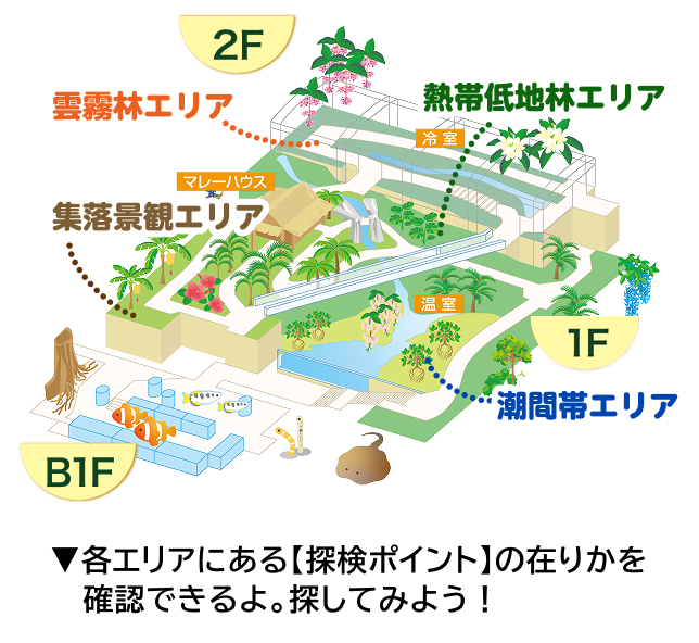 ねったいかん館内にぜんぶで20か所